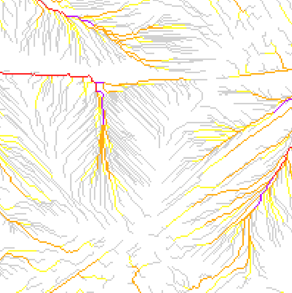 Cette série de couches de données représente les axes de concentration naturels des eaux de ruissellement ainsi que les couches dérivées du traitement.